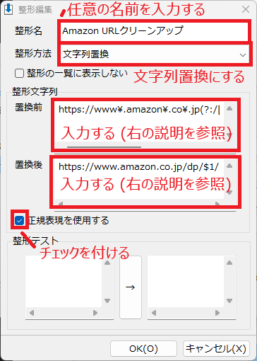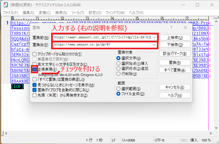 アプリを使う場合は、コピーしたURL を正規表現で置換します。下記は使用する正規表現です。