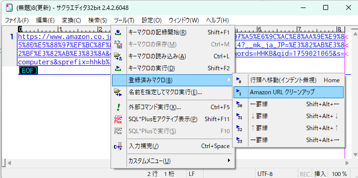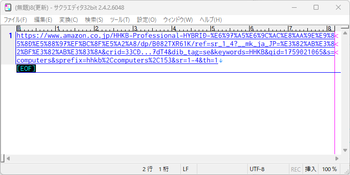 これらのうち、何もインストールしないで出来るのは一番上の『商品ページの『シェアする』ボタンを使う』と一番下の『Amazon URL かんたん短縮メーカー』、Windows で有名なアプリを使うのが『Cliborで整形する』と『サクラエディタで整形する』です。