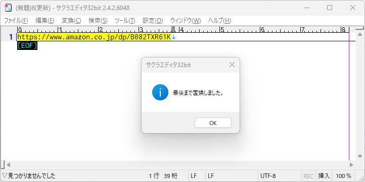 Replace('https://www\\.amazon\\.co\\.jp(?:/[^/]+)?/dp/([A-Z0-9]{10})[^\\r\\n ]*', 'https://www.amazon.co.jp/dp/$1', 28); // 置換